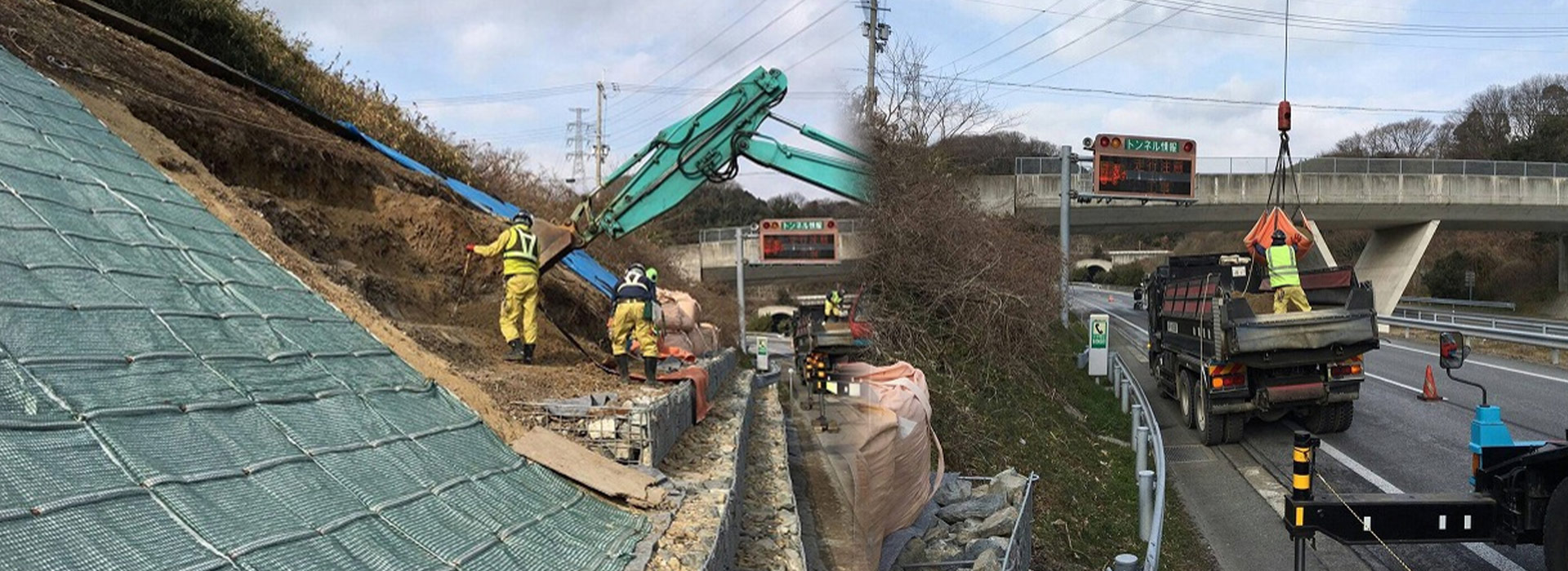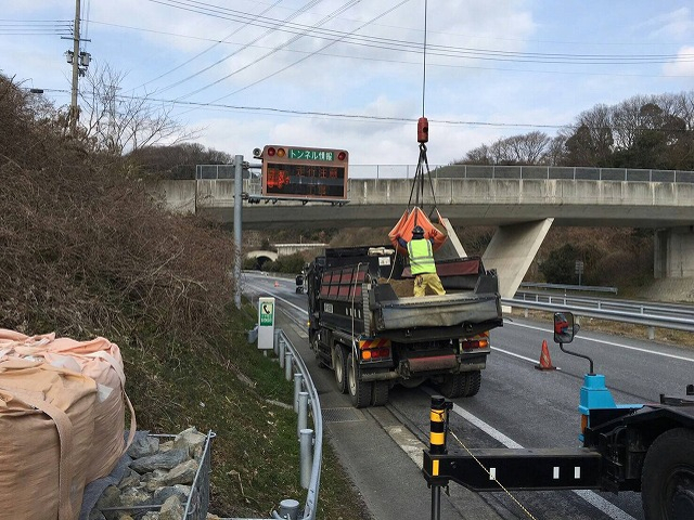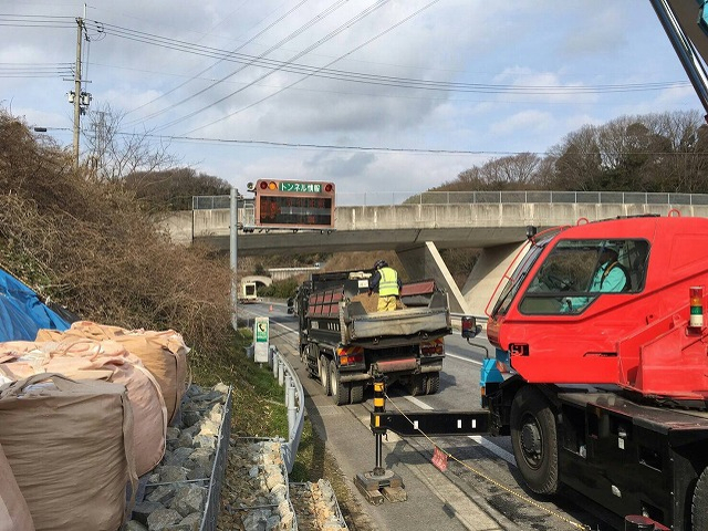 高速道路の維持管理が主な業務です。ガードレール等の事故後の復旧作業や、道路脇の樹木の伐採等のメンテナンス、法面(のりめん)補修作業、除雪、凍結防止剤の散布等々の作業を行っております。